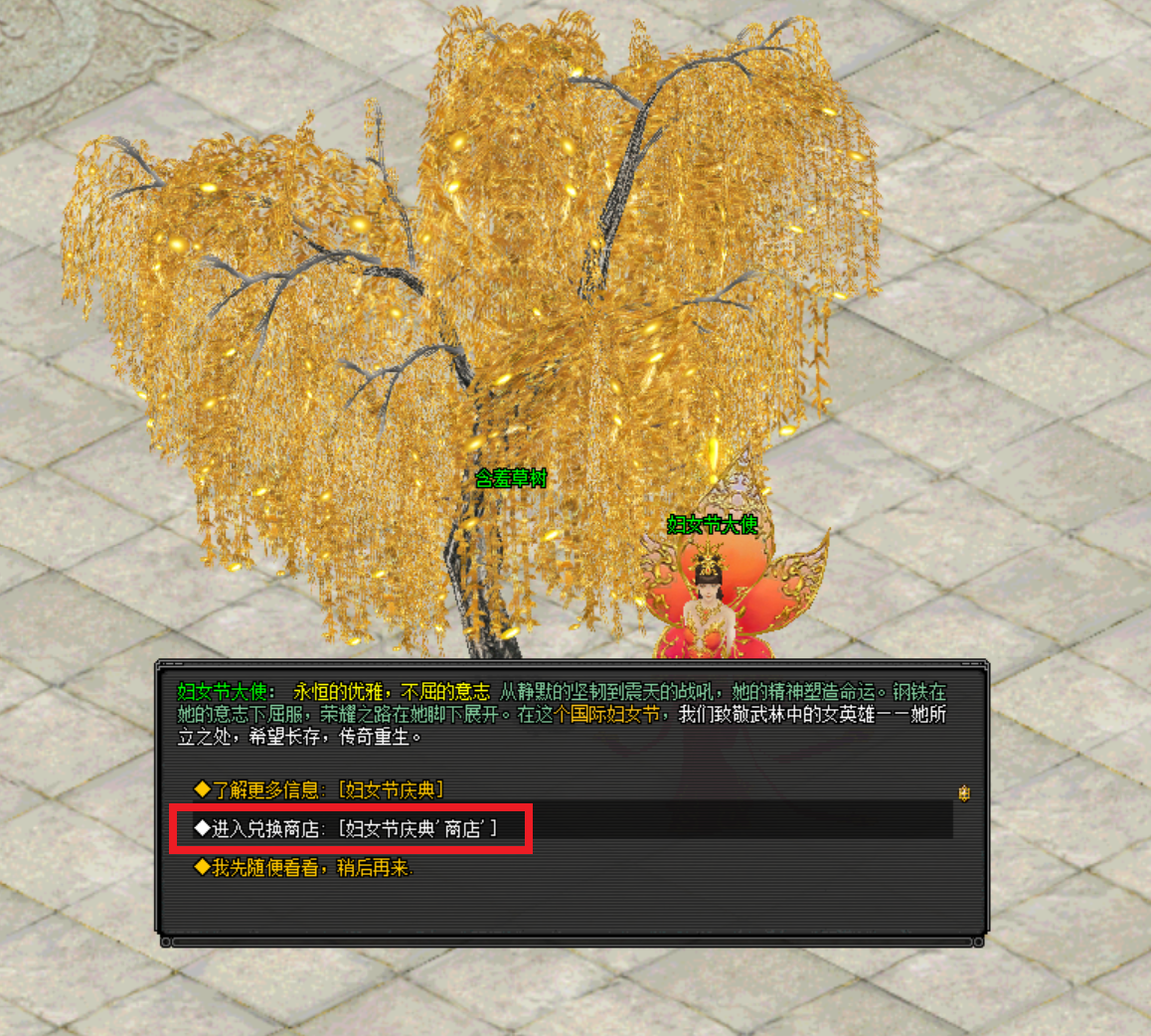 参与NPC:妇女节大使 或 含羞草树