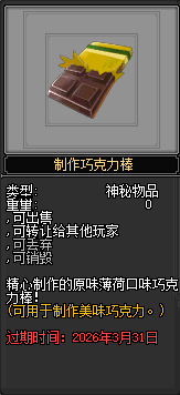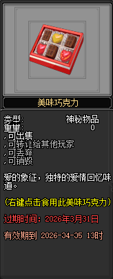 此外,侠士还可收集材料 制作美味巧克力。食用 美味巧克力 后,将可获得甜蜜奖励 银玫瑰。