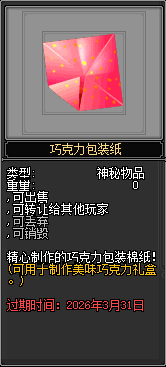 - 所需世界物品:巧克力包装纸(可通过每日首领活动获得)