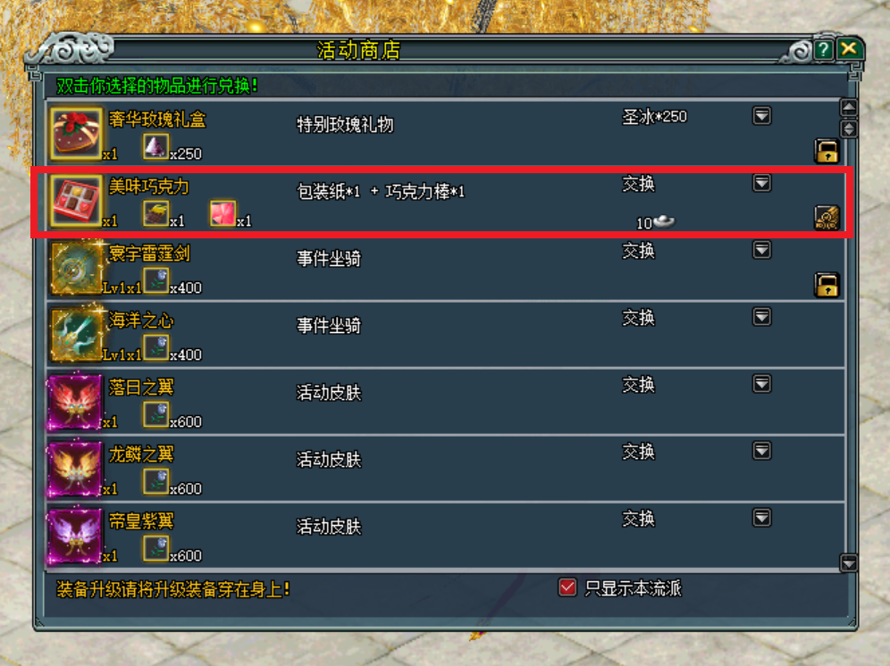 所需金币物品:巧克力棒(可在御街商 - 圣店购买)