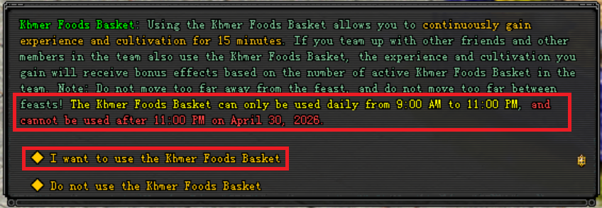 Heroes can use x250 Holy Ices to Exchange for x1 times daily Khmer Foods Basket from the Event Store.
